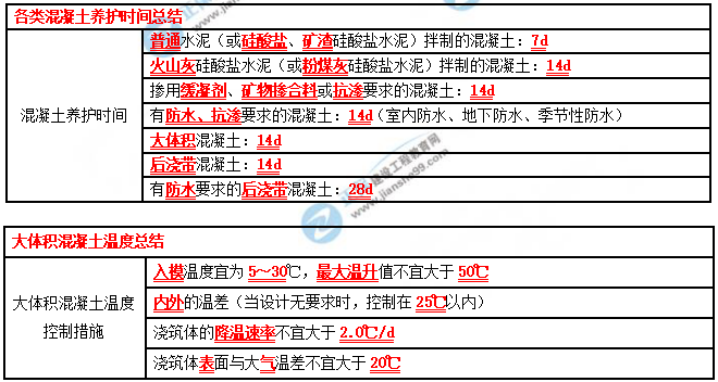 2021一建建筑實務(wù)考點:各類混凝土養(yǎng)護(hù)時間、大體積混凝土溫度總結(jié)