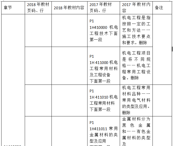 2018一級(jí)建造師《機(jī)電工程管理與實(shí)務(wù)》新舊教材對(duì)比解析匯總