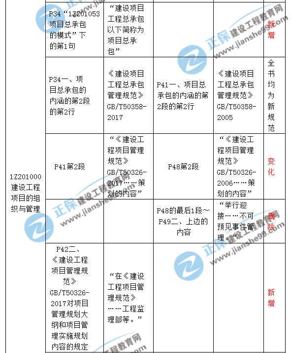 2018一級(jí)建造師《建設(shè)工程項(xiàng)目管理》新舊教材對(duì)比解析匯總