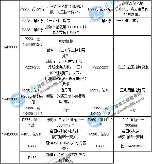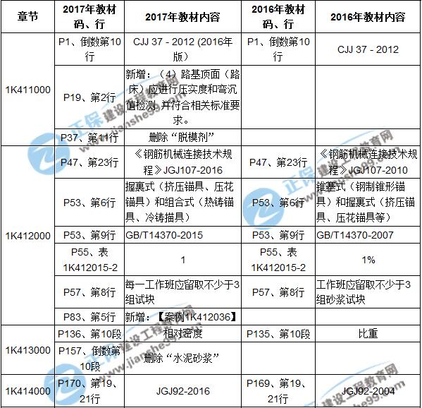 2017年一級(jí)建造師《市政實(shí)務(wù)》新舊教材對(duì)比