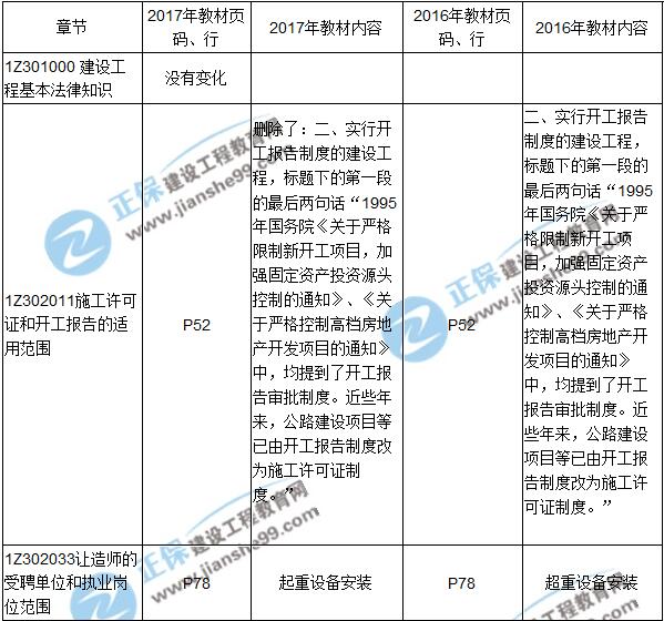 2017年度一級(jí)建造師《法規(guī)》新舊教材對(duì)比匯總