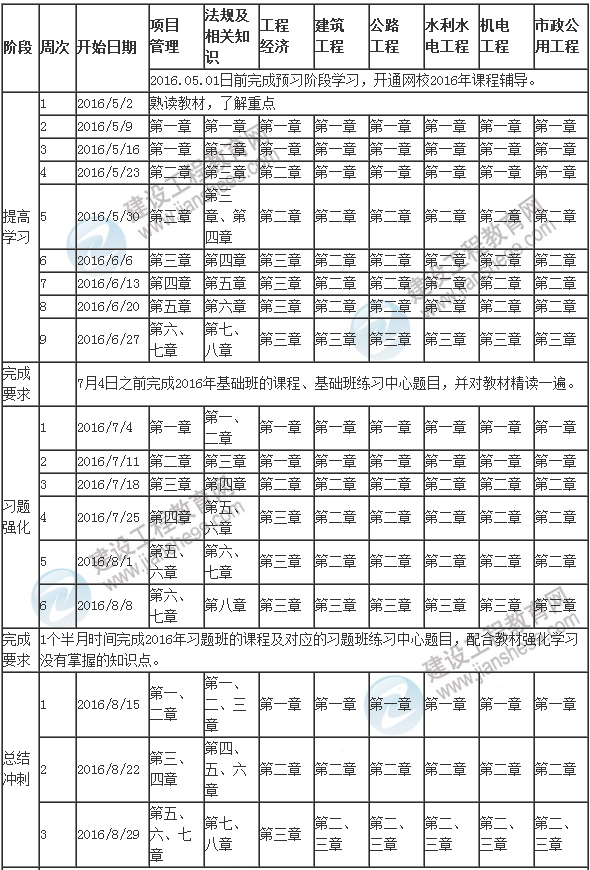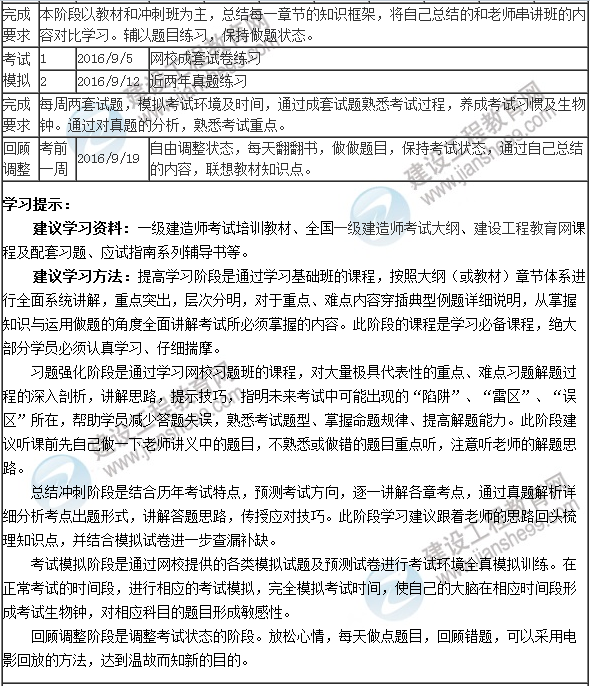 2016年一級(jí)建造師執(zhí)業(yè)資格考試備考階段學(xué)習(xí)計(jì)劃