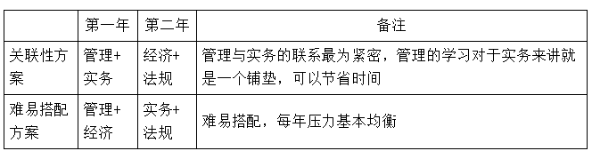 ■管理和實務(wù)組合最優(yōu),其次是管理和經(jīng)濟。由于管理與實務(wù)的關(guān)聯(lián)性最大,建議管理與實務(wù)同時考,或把管理放在實務(wù)之前考