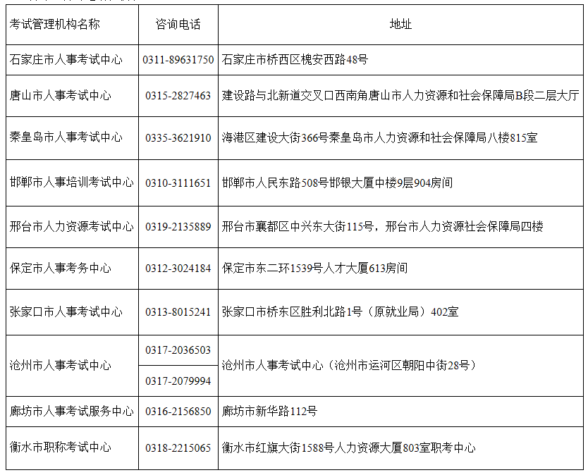 各考區(qū)咨詢電話和聯(lián)系地址: