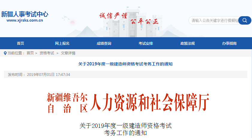 新疆2019年一級建造師考試報名時間7月1日至7月20日