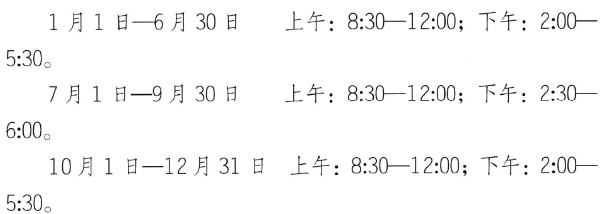 領(lǐng)取時間:周一至周五(法定節(jié)假日除外),具體作息時間如下。
