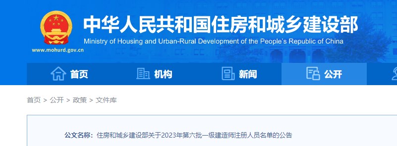 住建部關(guān)于2023年第六批一級建造師注冊人員名單的公告