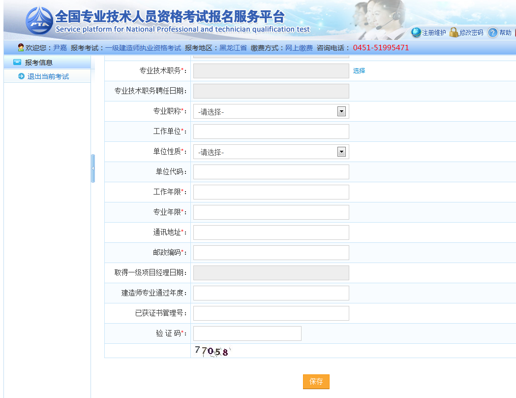 考生填完報(bào)名信息后點(diǎn)擊保存按鈕,完成報(bào)名。