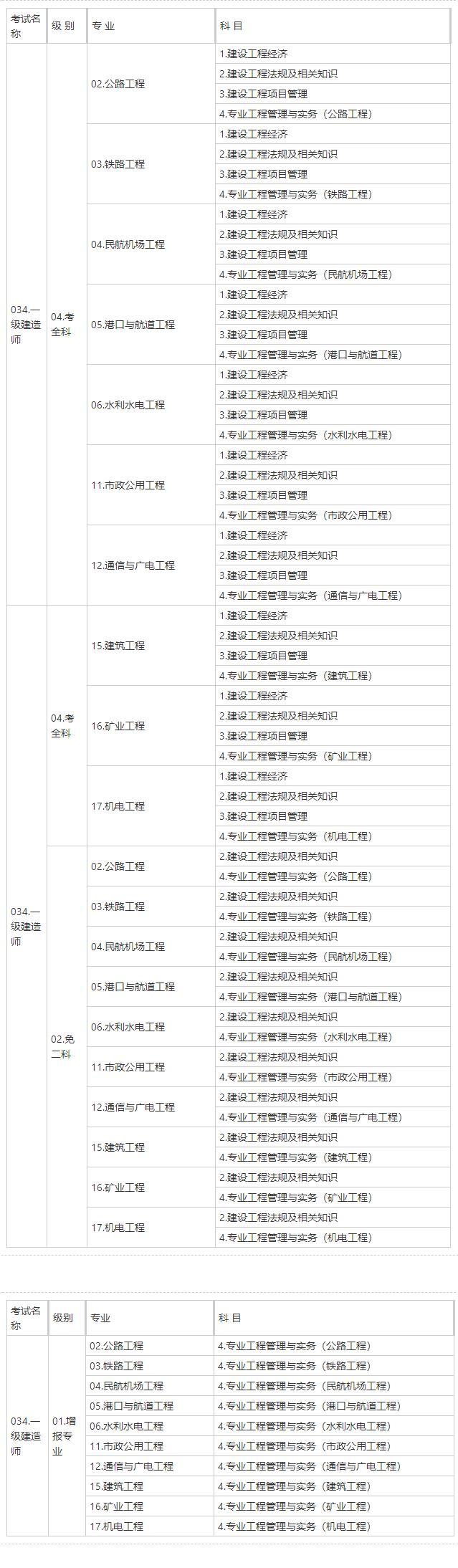 參加4個科目考試(級別為考全科)的人員須在連續(xù)2個考試年度內(nèi)通過全部應(yīng)試科目,參加2個科目考試(級別為免二科)的人員須在1個考試年度內(nèi)通過應(yīng)試科目,方可獲得資格證書;參加1個科目考試(級別為增報專業(yè))的人員須取得一級建造師資格證書后方可報名,通過應(yīng)試科目后方可獲得成績合格證明。