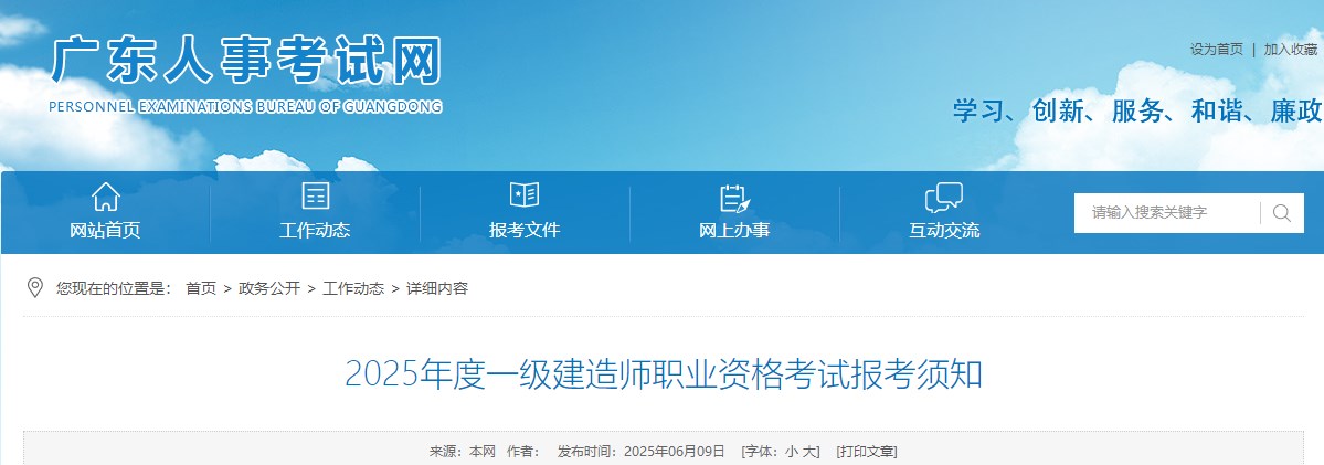廣東人事考試網(wǎng)發(fā)布2025年度一級建造師職業(yè)資格考試報考須知,具體信息如下: