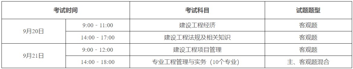 注:《專業(yè)工程管理與實務(wù)》科目分為建筑工程、公路工程、鐵路工程、民航機(jī)場工程、港口與航道工程、水利水電工程、礦業(yè)工程、市政公用工程、通信與廣電工程、機(jī)電工程10個專業(yè),報考人員可根據(jù)工作需要選擇專業(yè)。