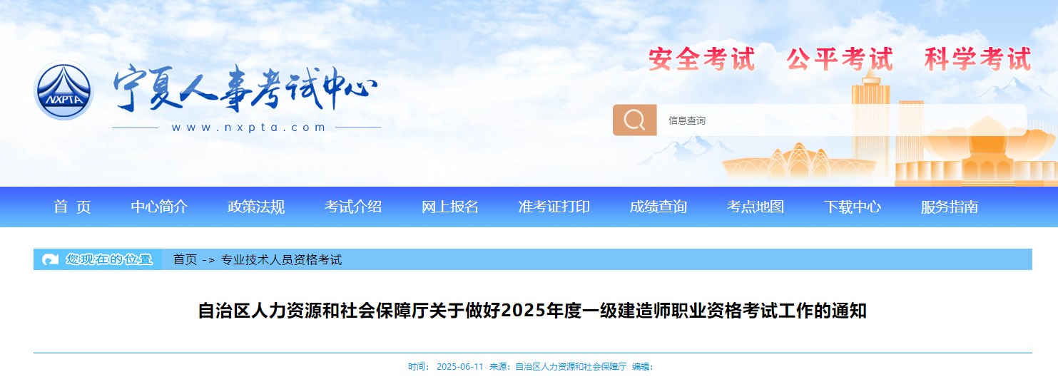 寧夏關(guān)于2025年度一級(jí)建造師職業(yè)資格考試考務(wù)工作的通知