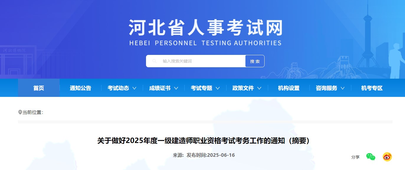 河北關(guān)于2025年度一級(jí)建造師職業(yè)資格考試考務(wù)工作的通知