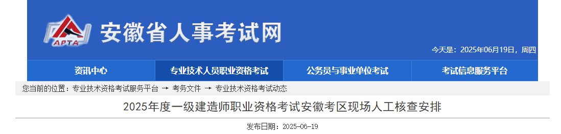 安徽省2025年度一級建造師職業(yè)資格考試現(xiàn)場人工核查安排