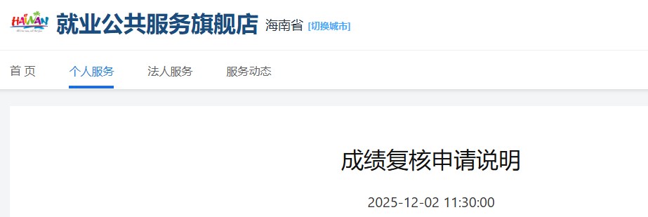海南省就業(yè)公共服務(wù)旗艦店發(fā)布成績復核申請說明,具體信息如下: