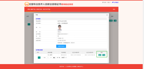 點擊[同意]按鈕后,即可進(jìn)入持證人查詢下載(含電子證書、電子文件下載)頁面。
