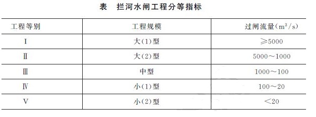 過閘流量為4000m3/s的攔河水閘規(guī)模為()型。