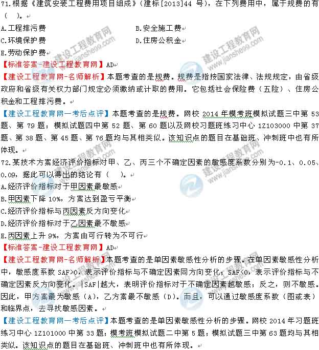 2014一級建造師工程經(jīng)濟(jì)答案及解析由老師整理而成,部分網(wǎng)站未經(jīng)許可擅自轉(zhuǎn)載、抄襲,造成內(nèi)容有所缺失或錯(cuò)誤,請大家以建設(shè)工程教育網(wǎng)發(fā)布為準(zhǔn)!