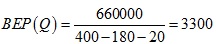 某建設(shè)項(xiàng)目的年設(shè)計(jì)生產(chǎn)能力為5000臺,單臺產(chǎn)品銷售價(jià)格為400元,年固定成本為660000元,單臺產(chǎn)品可變成本為180元,單臺產(chǎn)品稅金為20元。則其產(chǎn)量的盈虧平衡點(diǎn)為( )。