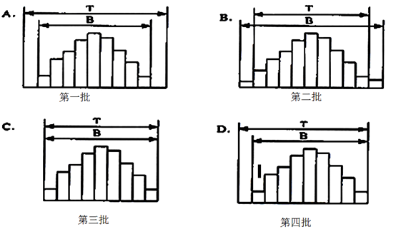 某鋼構(gòu)件廠根據(jù)供貨合同先后生產(chǎn)了4批鋼構(gòu)件,各批次的質(zhì)量統(tǒng)計直方圖如下所示。其中出現(xiàn)不合格構(gòu)件,必須采取措施糾偏的是()。