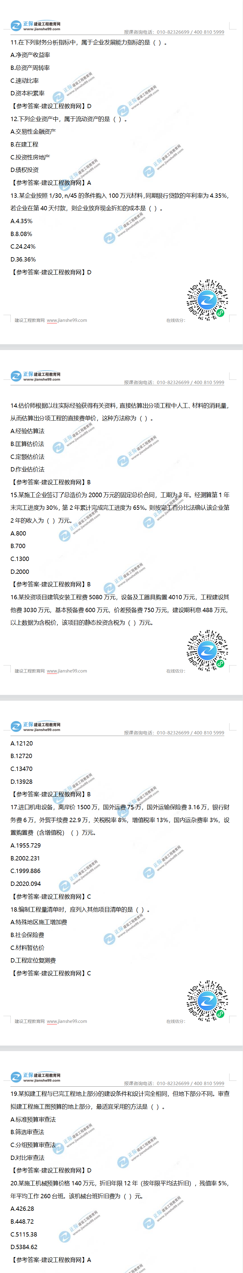 2023年一級(jí)建造師工程經(jīng)濟(jì)真題及答案解析11-20題。建設(shè)工程教育網(wǎng)考后將會(huì)根據(jù)學(xué)員反饋,及時(shí)匯總一級(jí)建造師工程經(jīng)濟(jì)真題分享給大家,并且會(huì)及時(shí)做出答案解析,希望能為廣大一建考生朋友帶來幫助。