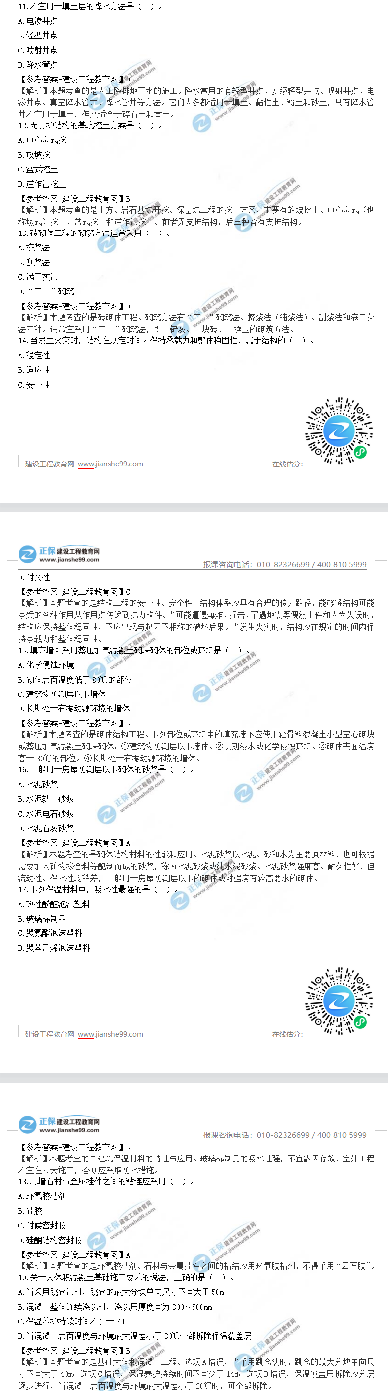2023年一級(jí)建造師建筑工程真題及答案解析11-20題