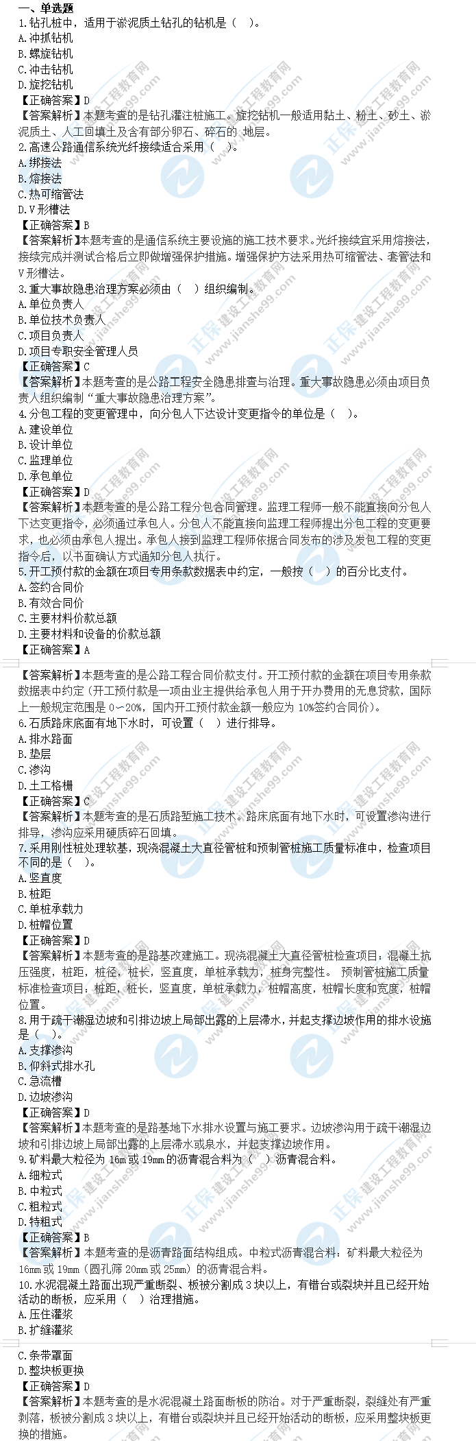 2023年一級建造師公路工程真題及答案解析選擇題。建設(shè)工程教育網(wǎng)考后將會(huì)根據(jù)學(xué)員反饋,及時(shí)匯總一級建造師公路工程真題分享給大家,并且會(huì)及時(shí)做出答案解析,希望能為廣大一建考生朋友帶來幫助。