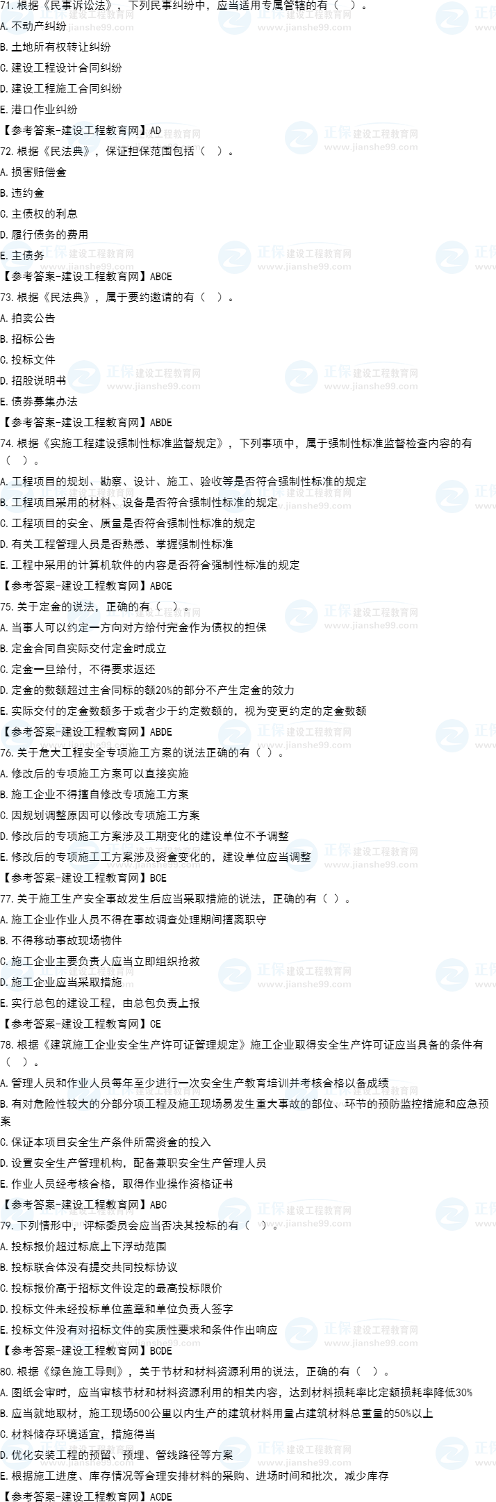 2022年一級(jí)建造師考試(補(bǔ)考)工程法規(guī)試題及答案解析71-80題