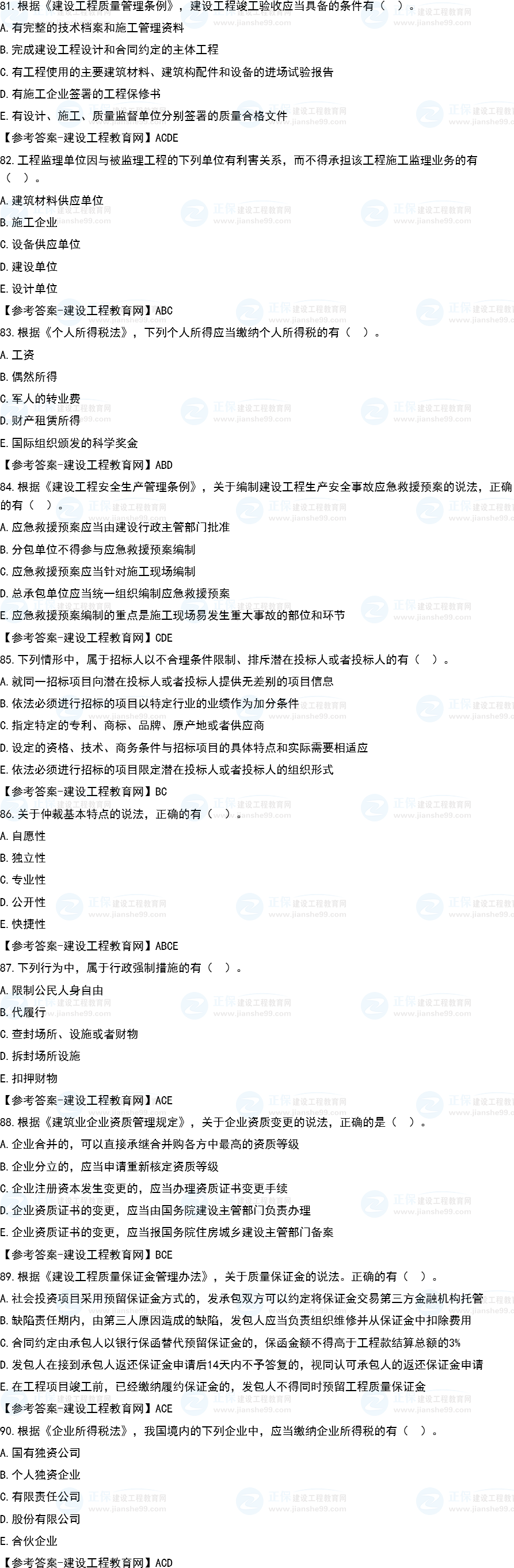 2022年一級建造師補考工程法規(guī)試題及答案81-90題。建設工程教育網(wǎng)考后將會根據(jù)學員反饋,及時匯總2022年一級建造師工程法規(guī)補考試題及答案分享給大家,并且會及時做出答案解析,希望能為廣大一建考生朋友帶來幫助。