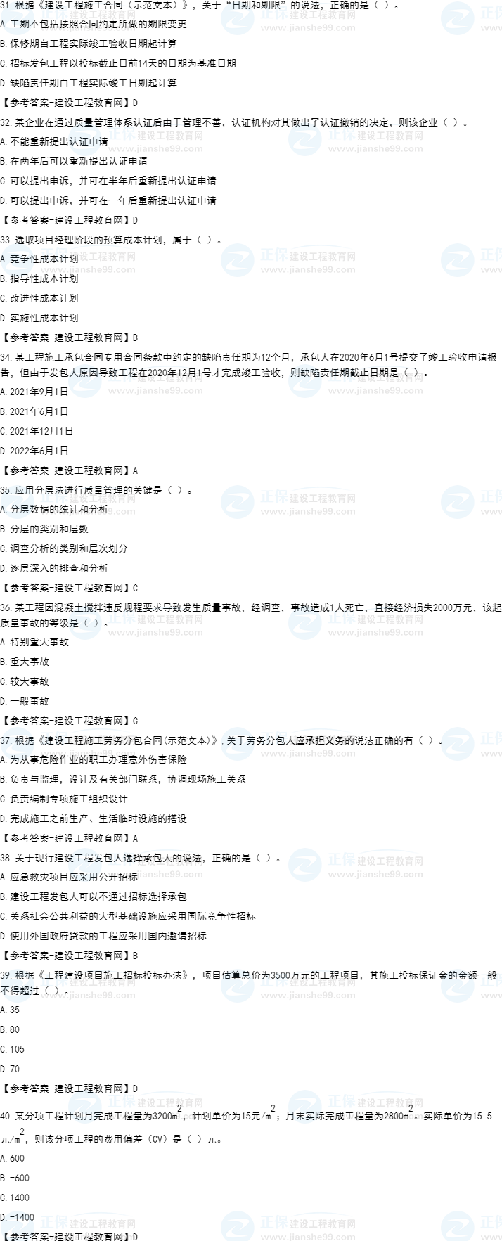 2022年一級建造師考試(補(bǔ)考)項目管理試題及答案解析31-40題