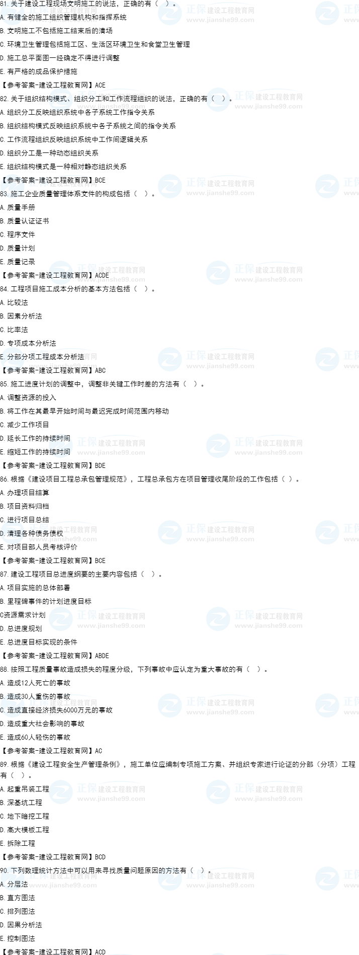 2022年一級建造師補考項目管理試題及答案81-90題。建設(shè)工程教育網(wǎng)考后將會根據(jù)學員反饋,及時匯總2022年一級建造師補考項目管理試題及答案分享給大家,并且會及時做出答案解析,希望能為廣大一建考生朋友帶來幫助。