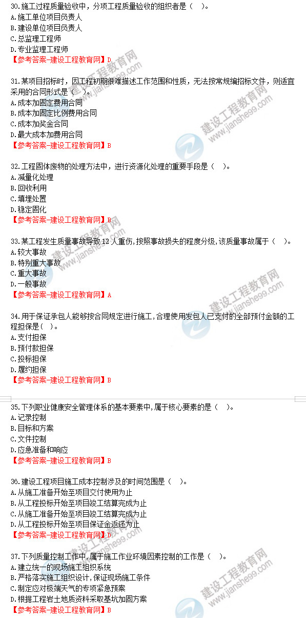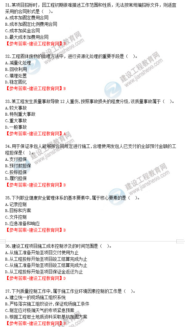 2019年一級建造師《建設(shè)工程項目管理》試題答案及解析31-40
