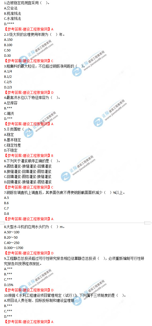 2019年一級(jí)建造師《水利實(shí)務(wù)》試題及答案解析1-10