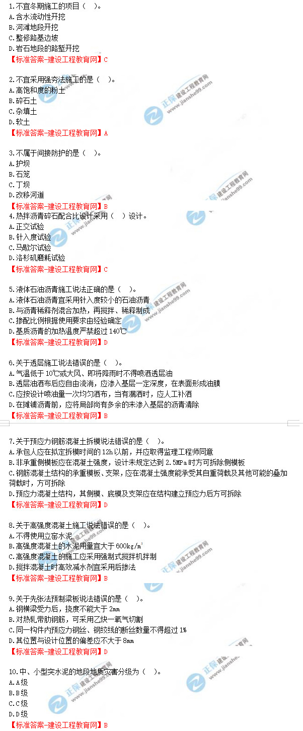 以上就是為大家分享的2019年一級建造師考試《公路工程管理與實務》試題及答案解析,建設工程教育網(wǎng)將持續(xù)關(guān)注2020年一級建造師考試的相關(guān)信息。更多2020年一級建造師考試內(nèi)容,盡在建設工程教育網(wǎng)一級建造師欄目!