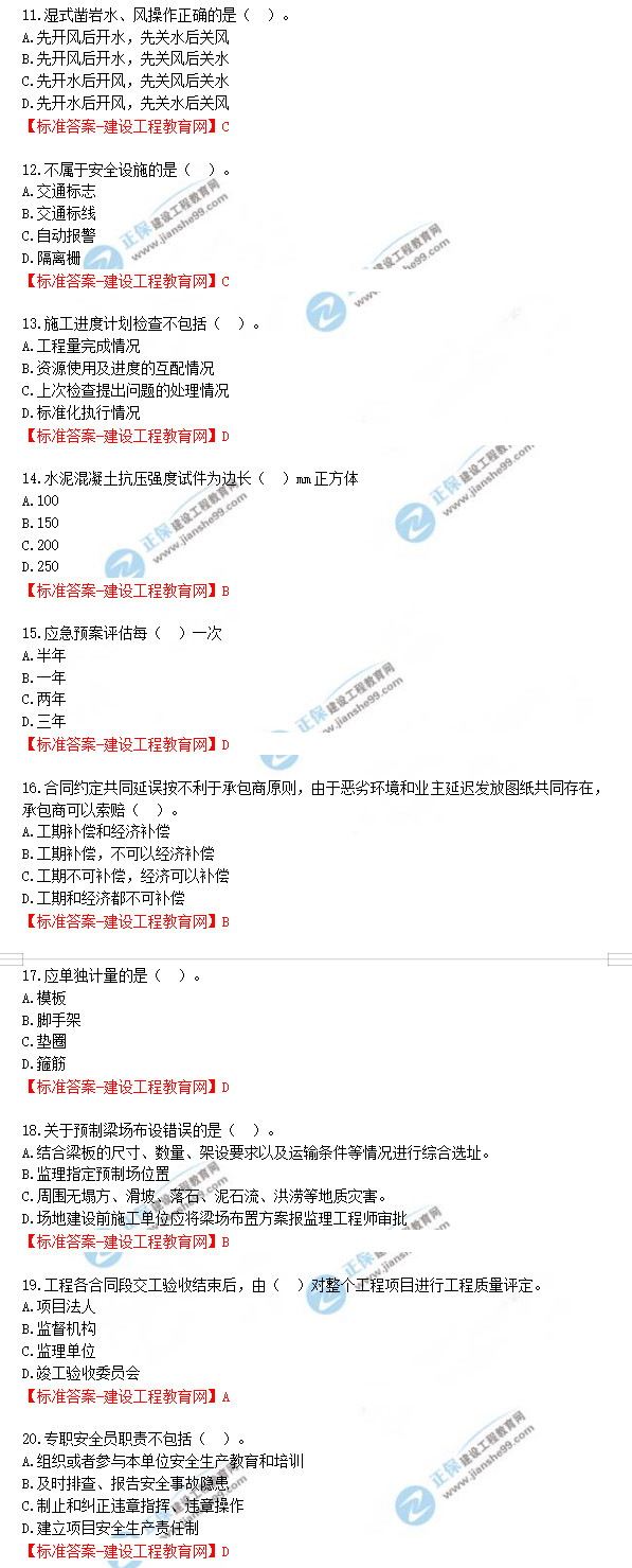 以上就是為大家分享的2019年一級建造師考試《公路工程管理與實務》試題及答案解析,建設工程教育網(wǎng)將持續(xù)關(guān)注2020年一級建造師考試的相關(guān)信息。更多2020年一級建造師考試內(nèi)容,盡在建設工程教育網(wǎng)一級建造師欄目!