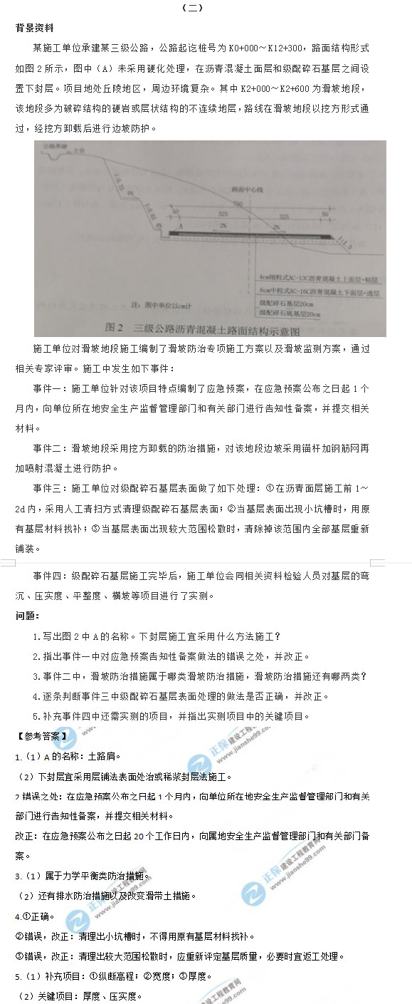 2019年一級建造師《公路實務》試題及答案解析案例二