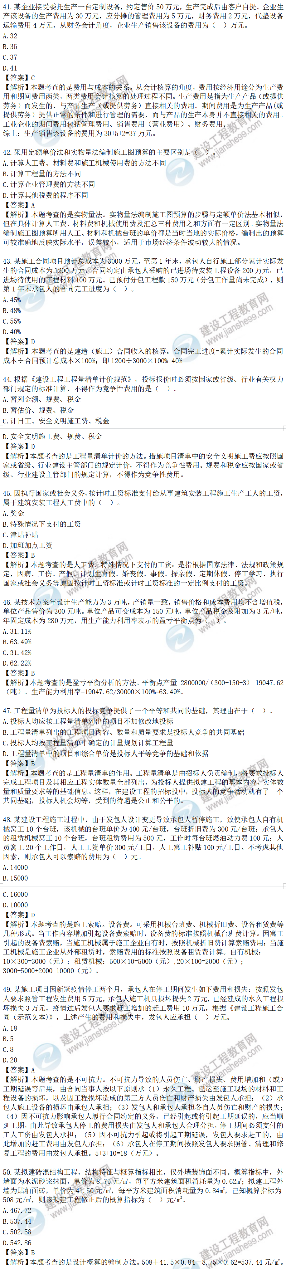 2022年一級建造師考試工程經(jīng)濟(jì)試題及答案解析41-50題