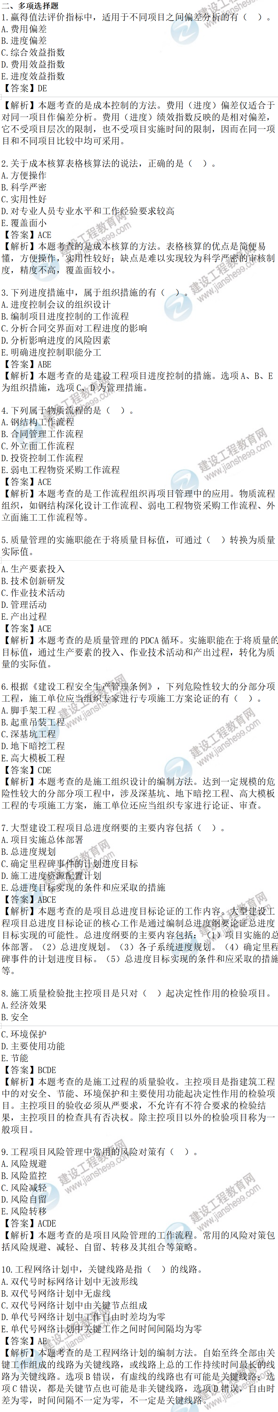 2022年一級建造師考試項目管理試題及答案解析71-80題