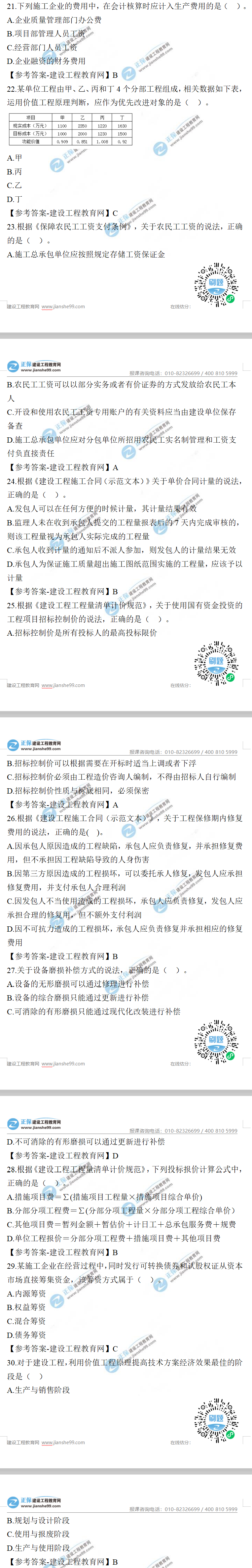 2021年一級建造師工程經(jīng)濟試題及答案21-30題,建設(shè)工程教育網(wǎng)考后將會根據(jù)學(xué)員反饋,及時匯總2021年一級建造師工程經(jīng)濟試題及答案分享給大家,并且會及時做出答案解析,希望能為廣大一建考生朋友帶來幫助。