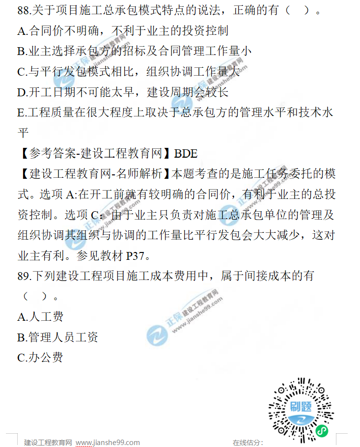 2021年一級建造師項目管理試題及答案81-90題,建設(shè)工程教育網(wǎng)考后將會根據(jù)學(xué)員反饋,及時匯總2021年一級建造師項目管理試題及答案分享給大家,并且會及時做出答案解析,希望能為廣大一建考生朋友帶來幫助。