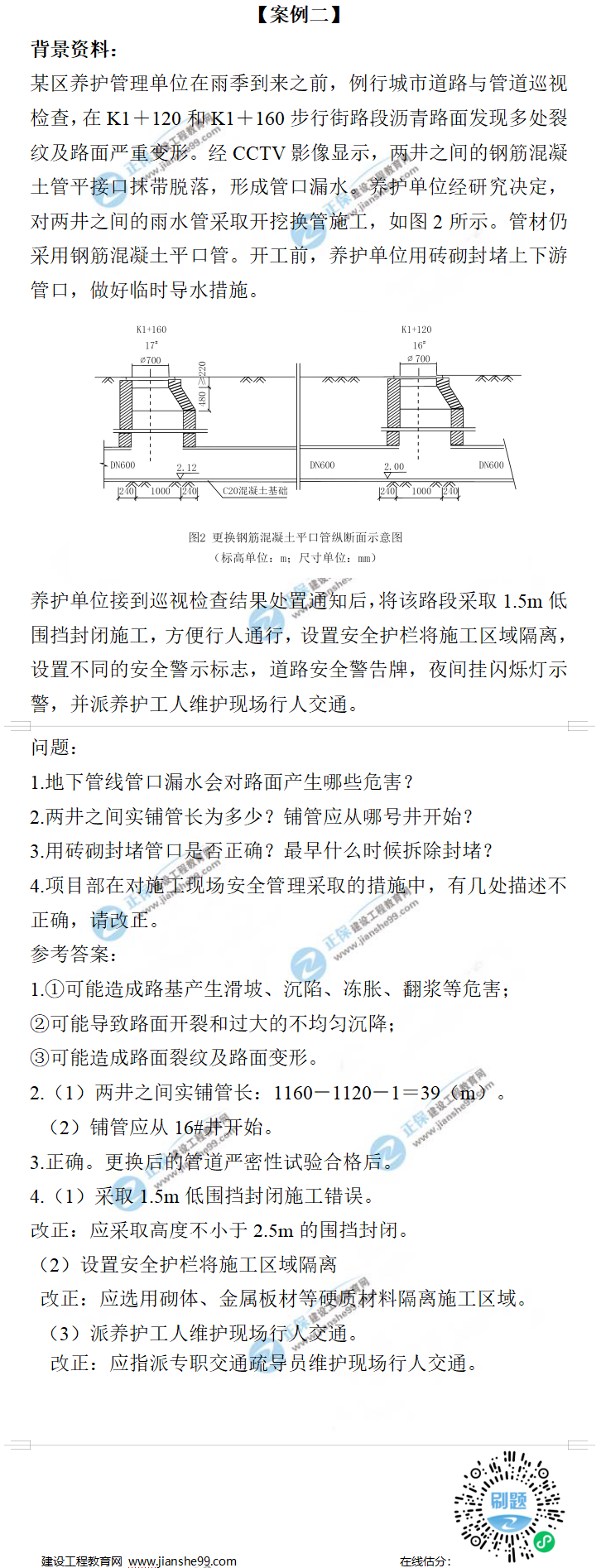 2021年一級(jí)建造師市政工程試題及答案解析案例二