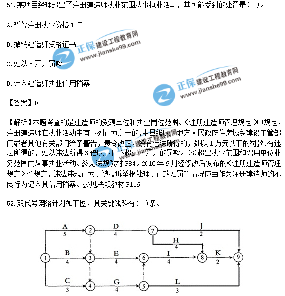 2018年一級建造師《項目管理》試題答案及解析(51-60),由考生回憶題干,建設(shè)工程教育網(wǎng)一級建造師考試教研組團提供參考答案,供廣大考生進行參考!點擊查看2019年一級建造師招生方案>>