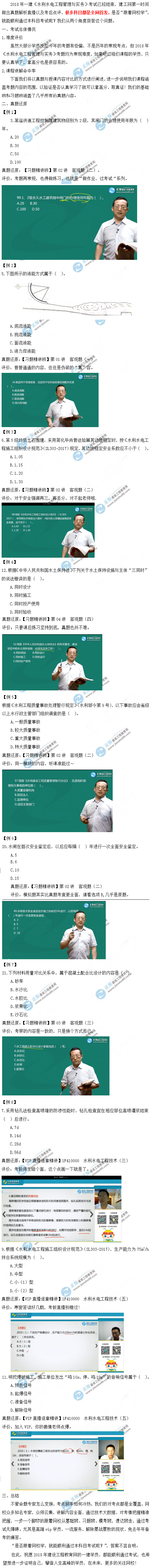 2018一級(jí)建造師《水利水電管理與實(shí)務(wù)》考試已經(jīng)結(jié)束,建設(shè)工程教育網(wǎng)第一時(shí)間做出水利試題解析直播以及考后點(diǎn)評(píng),希望對(duì)廣大考生有所幫助。下面對(duì)水利實(shí)務(wù)一科的選擇題情況逐一進(jìn)行分析:
