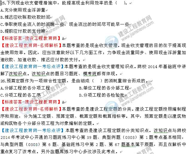 2014一級建造師工程經(jīng)濟答案及解析由老師整理而成,部分網(wǎng)站未經(jīng)許可擅自轉(zhuǎn)載、抄襲,造成內(nèi)容有所缺失或錯誤,請大家以建設(shè)工程教育網(wǎng)發(fā)布為準!