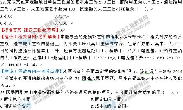 【建設(shè)工程教育網(wǎng)—考后點評】本題考查的是工程量偏差知識點。該知識點與網(wǎng)校2014年考試中心開通的模考班模擬試卷(一)第54題、模考班模擬試卷(二)第41題考點基本相同,而且在解析中重點復習了該考點。另外在題庫練習中心多次涉及此考點。