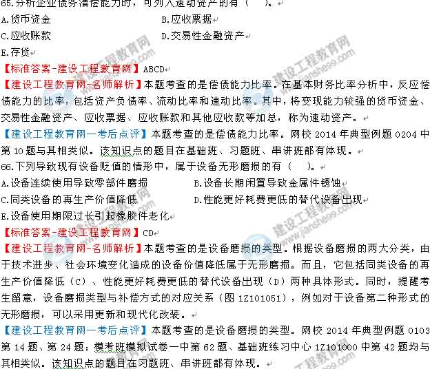 2014一級建造師工程經濟答案及解析由老師整理而成,部分網站未經許可擅自轉載、抄襲,造成內容有所缺失或錯誤,請大家以建設工程教育網發(fā)布為準!