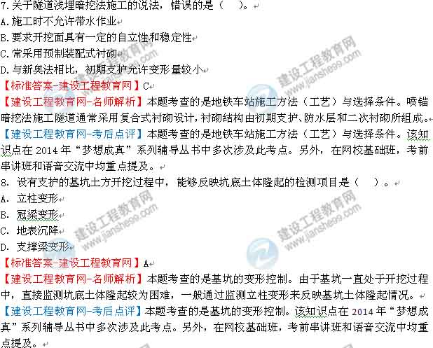 【建設(shè)工程教育網(wǎng)-考后點評】本題考查的是地基加固常用方法和技術(shù)要點。該知識點在2014年“夢想成真”系列輔導叢書中多次涉及此考點。另外,在網(wǎng)?;A(chǔ)班,考前串講班和語音交流中均重點提及。