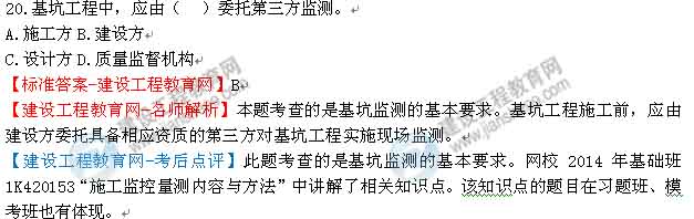 2014一級建造師市政工程實務考生試題及答案第16-20題,更多試題及答案在網(wǎng)頁下方