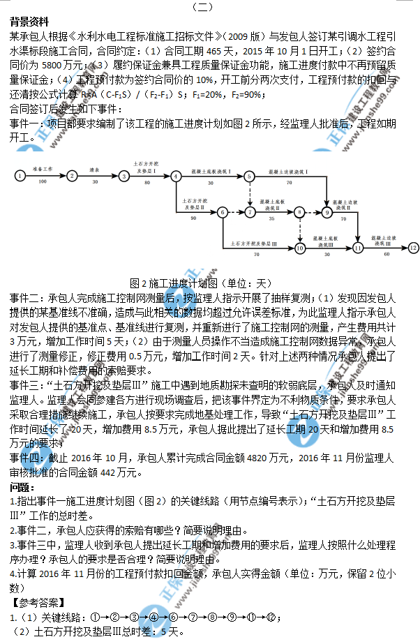 2018年一級建造師《水利實務(wù)》試題答案及解析案例二