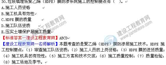 【建設(shè)工程教育網(wǎng)—老師解析】本題考查的是泥質(zhì)防水層及膨潤土墊(GCL)施工技術(shù)。GCL墊施工流程主要包括GCL墊的攤鋪、搭接寬度控制、搭接處兩層GCL墊間撒膨潤土。